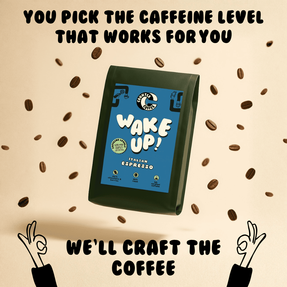 Counter Coffee is here to change that, by focusing on great tasting coffees which have been carefully selected for caffeine strengths. Our mission is to make sure you can get all the buzz without the crash.