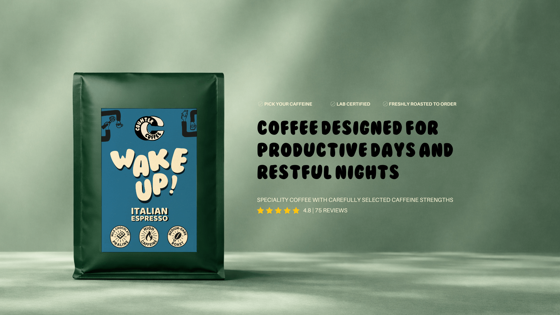 Counter Coffee is here to change that, by focusing on great tasting coffees which have been carefully selected for caffeine strengths. Our mission is to make sure you can get all the buzz without the crash.