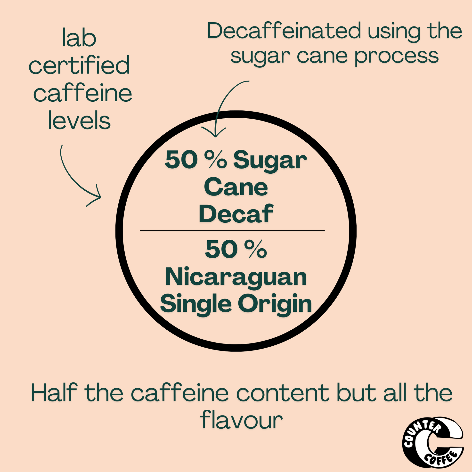 1 x 150g Pack of our Easy Afternoon Half Caf - perfect for mid afternoon slump.
